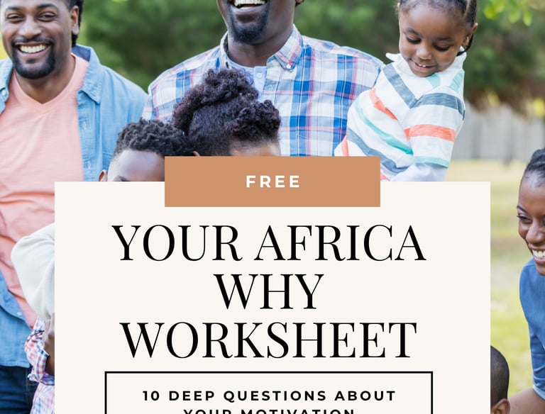Discover your true purpose on the continent with the 'Your Africa Why Worksheet'—a powerful, free download designed to ignite meaningful self-reflection and intentional planning.